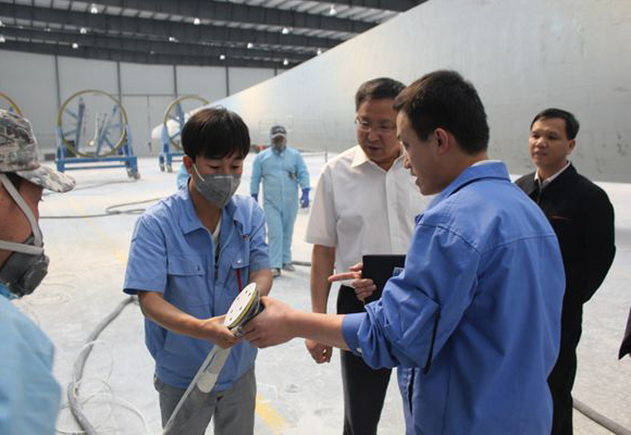 2015年6月11日,中材集團副總經理于國波、安全環保部副部長江平一行到中材葉片酒泉公司進行安全檢查。 集團副總經理于國波、集團安全環保部副部長江平一行到達中材葉片酒泉公司...