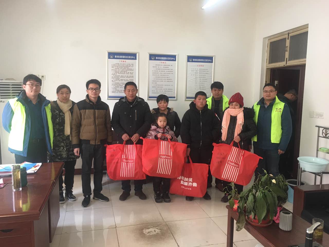 1月25日下午,青年小分隊(duì)首先來(lái)到善國(guó)苑社區(qū)中心,為社區(qū)建檔立卡的貧困兒童及留守兒童送上由棉衣、棉褲、棉帽、手套、圍巾等組成的“暖冬包裹”,并逐一了解幫扶兒童的家庭情況,確定后續(xù)幫扶措施。隨后,青年小分隊(duì)來(lái)到十里鋪社區(qū)困難老人家中,為老人送去了生活物資,詳細(xì)了解老人的生活近況,并送上節(jié)日的祝福。